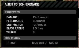 - As officially supported equipment, alien grenades should get status - same as Cleaner accelerated rifles - shows in armoury, not junk, but sellable.