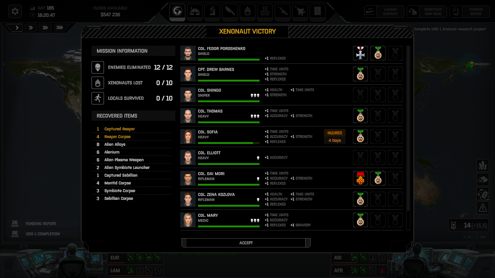 The best way to prevent alien fire was sitting behind full cover/smoke at angles that forced aliens to walk through multiple overwatches to fire. Most of the time, they won't bother.On the strategic layer, if you are intercepting UFO's and winning missions - doomsday/panic just isn't a serious problem. The interception mini game was interesting at first, but the hundreds of interceptions throughout the campaign grew somewhat tedious. I leaned on auto-resolve towards the end, which I think may be too generous. The biggest problem I faced in the strategic layer were the UFO waves that would bait out your interceptors so that troop transports could land on your bases. I did lose one of my secondary bases at the end of the game to this mischief. However, at that point, I was swimming in cash so it was only a minor inconvenience. At higher difficulties, I expect to invest more into batteries in my bases to prevent this.