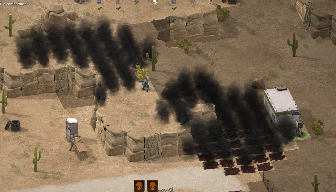 To replicate this, have a soldier throw a smoke grenade onto a patch of elevated ground and also onto a patch of low ground near the elevated ground. The smoke grenade on elevated ground will only generate smoke on elevated ground (left), while the smoke grenade on low ground will have its full effect (right).Thanks for the bug report! The first issue (smoke grenade thrown not generating smoke) is an issue that we've also encountered on testing last week, we're working towards figuring out what's causing said bug. For the other bug (smoke not propagating to lower levels when thrown on higher elevation), I'll have to double check with the team as I'm not sure whether this is intended behaviour or not.