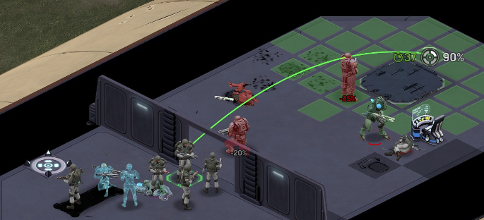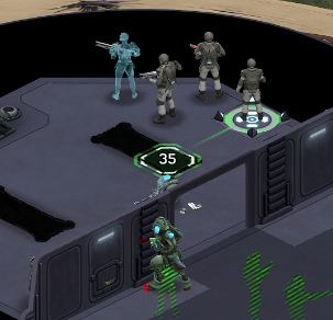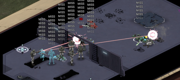 Another example came up in normal play, I opened a door and saw a cyber-drone. All 3 Marines took a 35%+ shot at it (expected 3.5 hits), and all 3 marines hit the shield at the door, killing him: Shot 1: The tile next to the doorway took a hit alien took 2 hits, cover in-front of it took 1+, wall behind took 2+ Second shot: Essentially the same result, less hits on enemy than expected (3 expected min), my solder ducked the wall eats another shot (25% normal setting): These shots in testing vs no nearby colliders were laserbeams, but here my solder gets hit again! (2/10 of the bullets aimed at this soldier in just the picture below) (25% chance?) These are almost 80 accuracy soldiers, with range bonus, one was crouched. The first shot was a laser machine-gun, other 2 were Gauss. I have seen too many of these for it to be 'chance' (poor aliens): 6-7 soldiers in the burst fire, and I can't see any tiles hit anywhere or soldiers The actual laser beams we saw in testing, happen still: