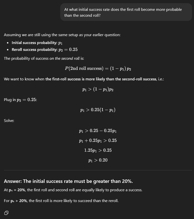 I showed in this post that shooting into smoke, shows that: Smoke Reduces 'Stopping Chance Component' The 2 roll system works as I expect it to in many cases, otherwise 3 tests of 10 shots would be 2 success, not 4. After that, I searched for a better test case, which resulted in the 'edge of the map' issues. Then I later tested that the reduction in Hit Chance for smoke from misses, only applies if the unit hit is inside the smoke. (The 7% re-roll was calculated NOT the 7% main hit, but I seem to be messing up the calc in my head right now, I get a slightly different, number, but its not important) So, then shooting out of the smoke, we encounter the 'Target uses Hit% instead of Miss%' issue, even with 100 Stopping Chance.: We can just shoot anything in-front of it to kill it, since we have 100% miss hit chance: (or we can shoot behind it because Accurate Misses will prioritize the highest cover) This shows that 'Real Misses' use stopping chance, probably, but only when the target is not the target. It seems the game wants us to get to the bottom of this: