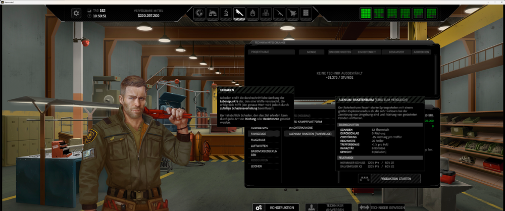 Notice something on the technician screen/menue. It occurs when I click on the MARS-Tank. The Alenium-rockets. A new menue opens, and after a moment it stays. there. I moved away as seen on the screen-shot. and move the cursor to another building option. But the MARS description is still there. The behavior is different, on all the other things I can build. For example here the advanced laser rifle. If I move away with the cursor, the description vanishes. On the MARS it stays and I have to move further away from it on the screen, click and then it disapears.