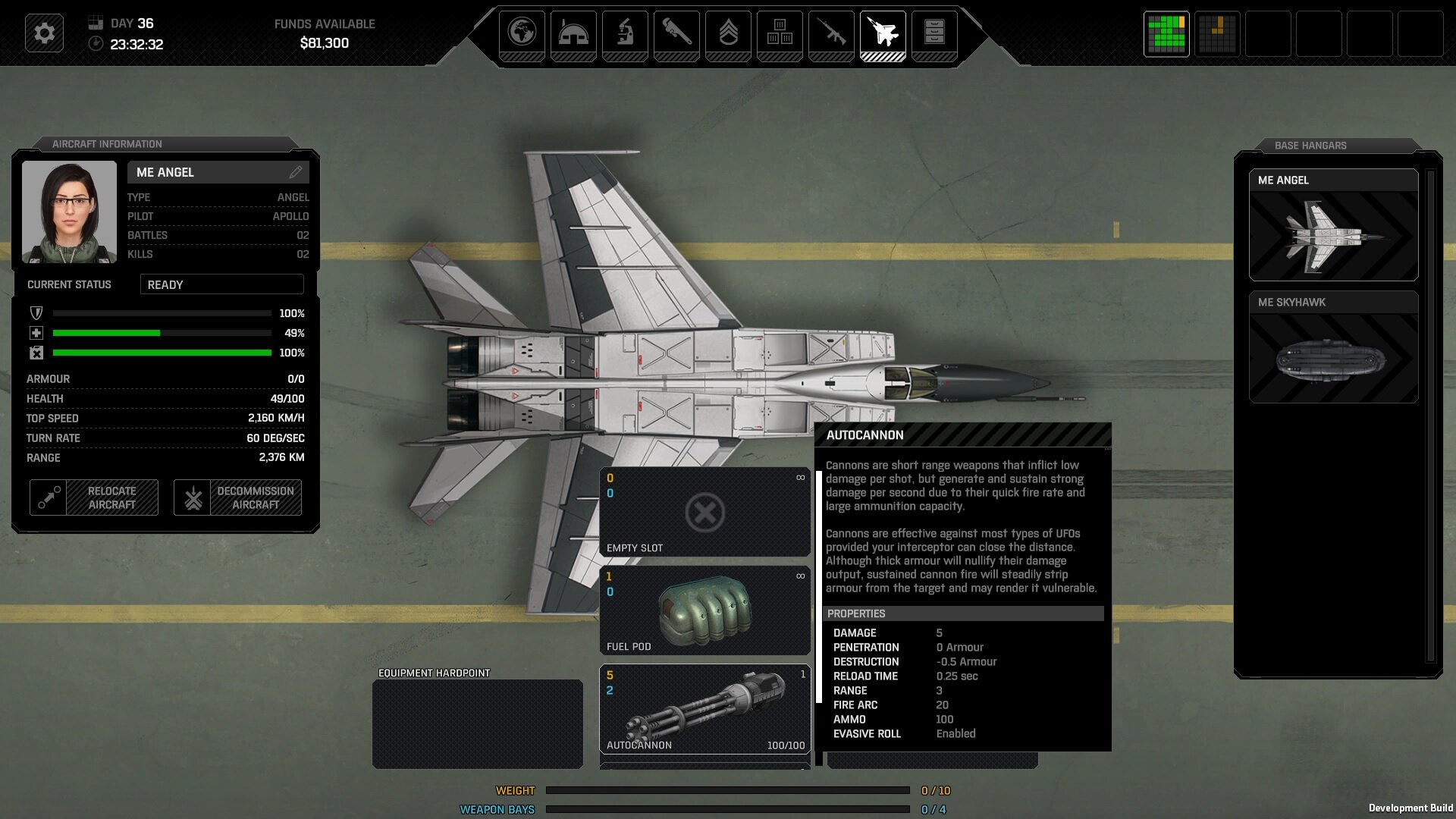 Warie_W00kie Posted October 22, 2023 Posted October 22, 2023 (edited) After air combat, the armaments of interceptor became empty and cannot be re-selected. What Happened: Angel inceptor was armed with 1 cannon, 1 sidewinder (2/2), 1 armor. During interception, sidewinder only fired once. After it returned to base, all armaments on the interceptor were unequipped when I pulled up the aircraft screen. The menus to re-arm showed that the sidewinder is gone completely instead of (1/2), the cannon that was on the plane disappeared as well. At this point, clicking on anything in the armament menu does nothing. iron_man-104.json Edited October 22, 2023 by Warie_W00kie Quote