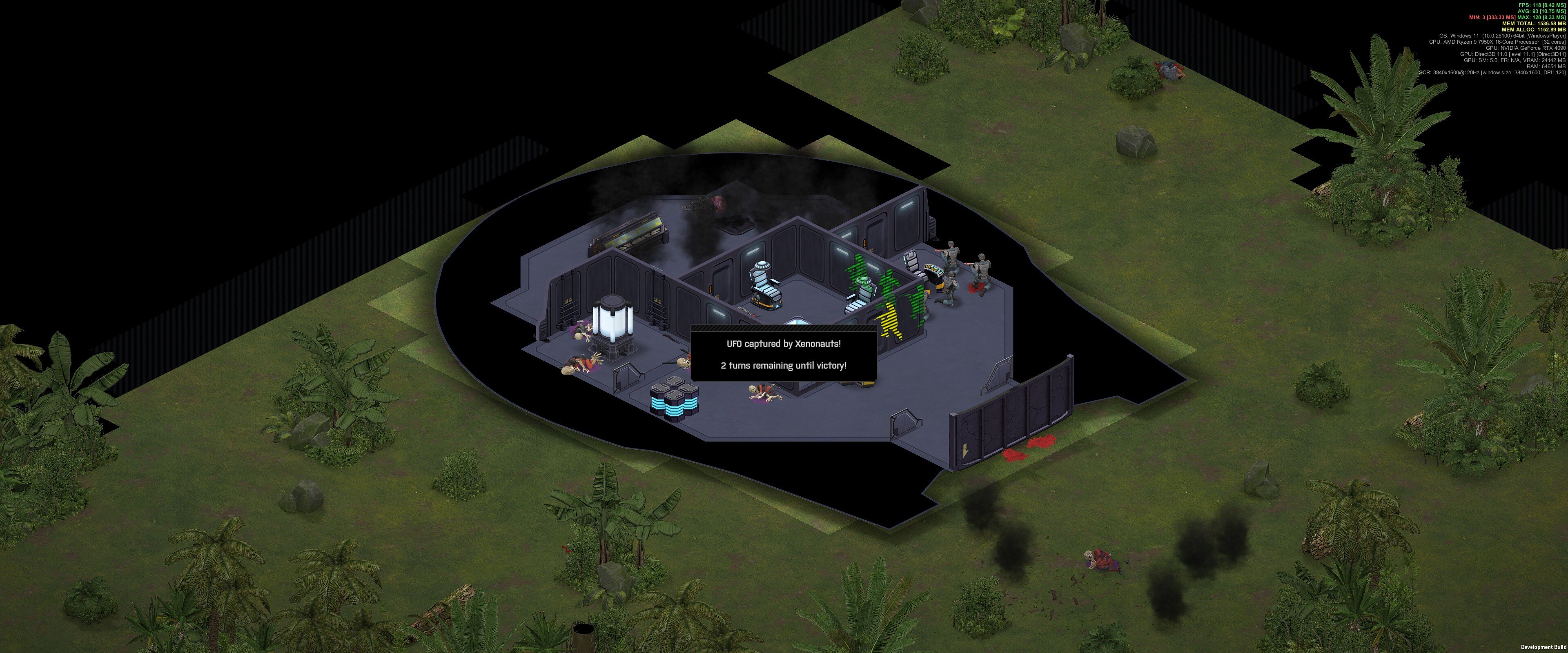 Kouki Posted September 2 Posted September 2 20 hours ago, SoftwareSimian said: Seems to be new in v6: when you kill all the aliens in the UFO there's no a popup "UFO captured by Xenonauts! 2 turns remaining until victory!". Followed a few sections later with the "Mission Complete" message. The capture-ufo-in-3-turns message is a good mechanism to have if there are other remaining aliens outside the UFO. But in the majority of ground combat the outside is cleared first and the last aliens are inside the UFO, and this message adds more confusion than help in this context. I would suggest that this message only be triggered when (aliveAliensInUFO=0 AND aliveAliens>0). Be careful to only count conscious alive aliens, in the ground combat I noticed this I had stunned some other aliens both inside and outside the UFO. auto_groundcombat_turn_14_end-191.json 2.57 MB · 0 downloads Thanks for the bug report! Looks like this happens when an alien falls unconscious inside the ufo, we'll fix this. Quote