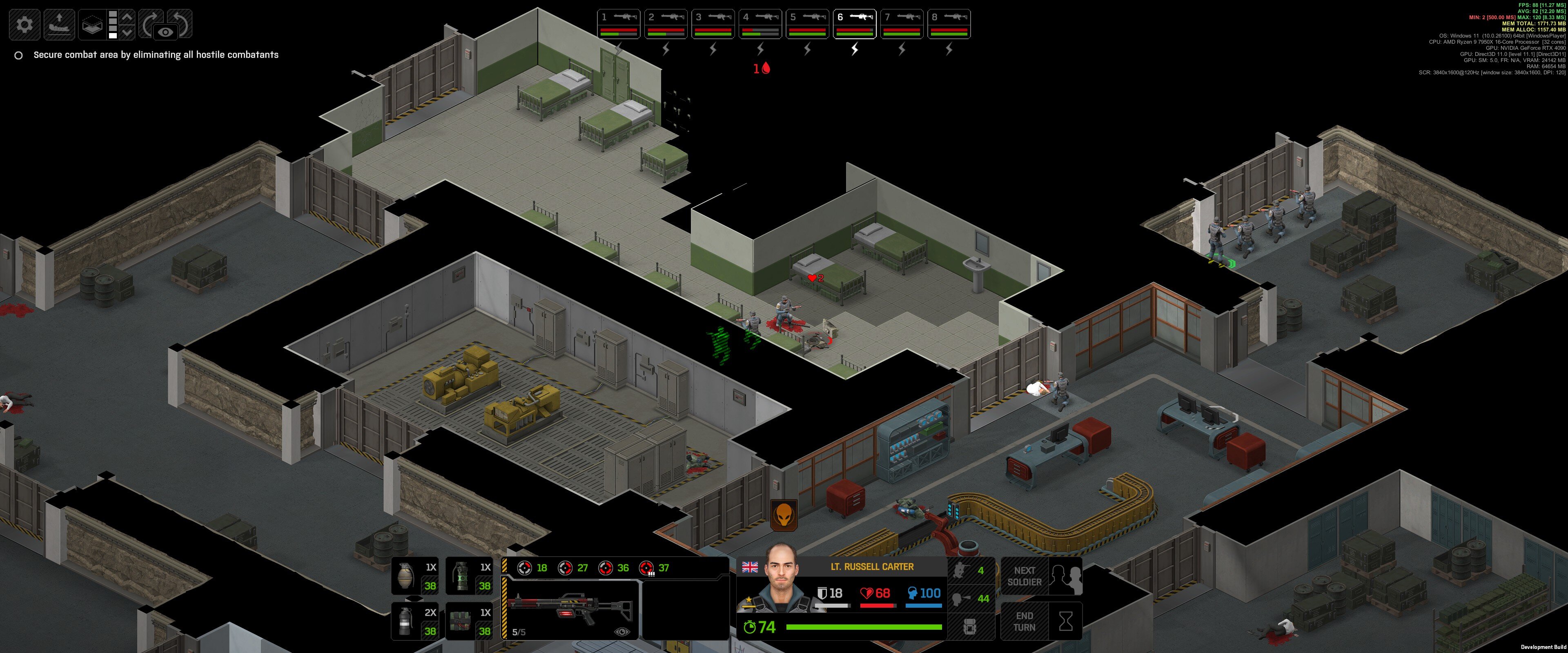 Kouki Posted September 2 Posted September 2 4 hours ago, SoftwareSimian said: Cleaner base mission. Found sentry gun. Shot it and killed it. It blew up. And yet, it somehow retained 2 hp so shot my soldiers even though it's "dead". auto_groundcombat_turn_8_end-272.json 2.76 MB · 0 downloads auto_groundcombat_turn_7_start-269.json 2.77 MB · 0 downloads Yeah, the destruction visual on the sentry guns are bugged atm, we're getting it fixed. Quote