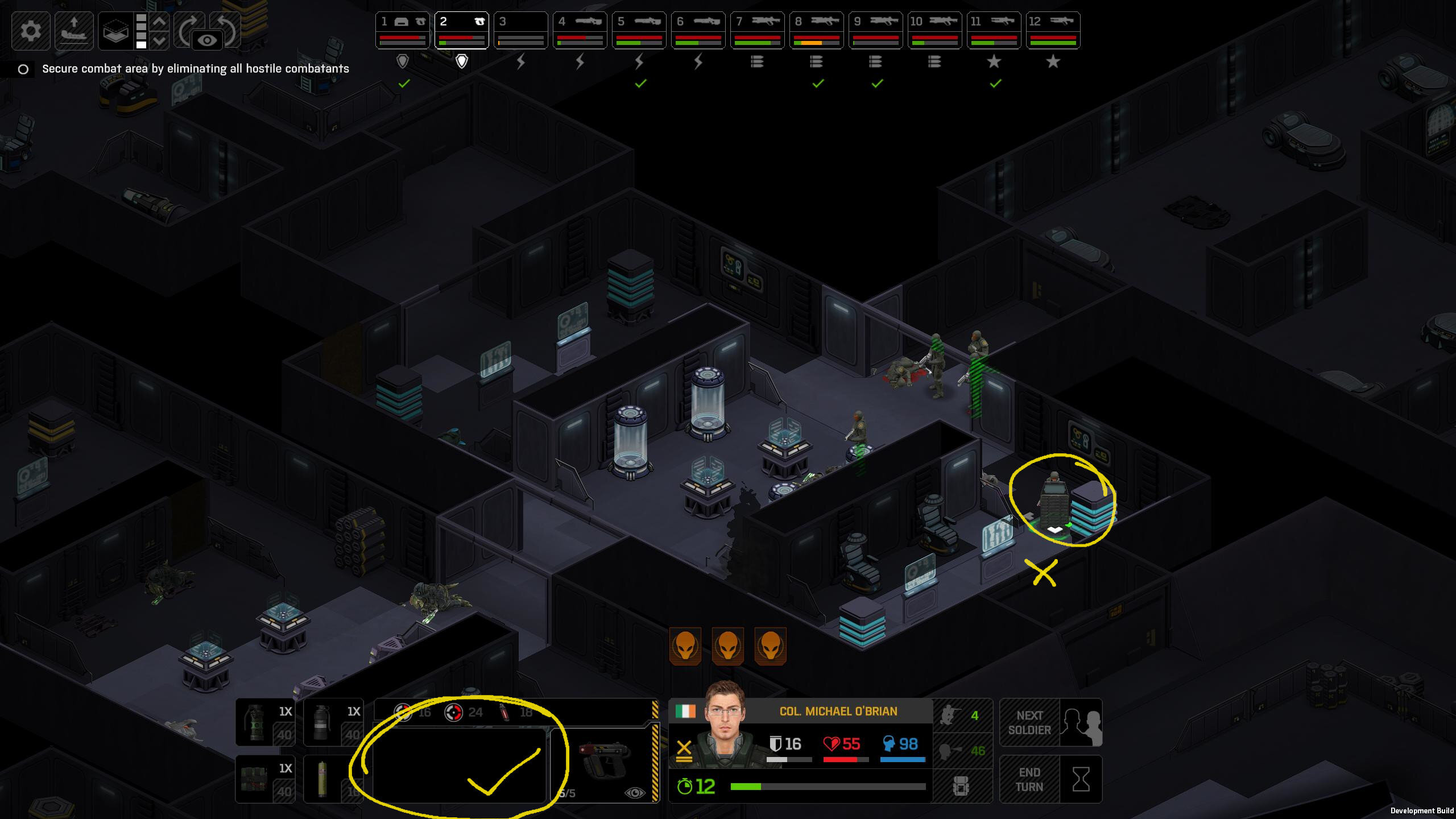 Kouki Posted February 25 Posted February 25 3 hours ago, fusion-waffle said: Description minor gfx glitch - soldier still animated as holding shield, but shield was destroyed last turn What Happened Day 296, 2nd alien base mission of campaign. During previous turn, I forgot sibellians can take multiple flashbangs to suppress, my shield guy opened the door, threw a flashbang, it didn't suppress the sibellian, then my squad got reaction fired by the sibellian's plasma machine gun. This destroyed a shield, killed a soldier, suppressed 4/5 of the survivors. All expected, complete mayhem & and working as intended. But, the next turn, I noticed that the shield soldier is still animated as holding a shield, despite it being missing from the primary slot after being destroyed by fusion rounds. Further Info Please see attached f11 bug report zip: bug_report_2026-02-25-17h43_gc_7.2.0_user_f11_2.zip 17.66 MB · 0 downloads Thanks for the bug report! We're aware of this one but unfortunately without a way to reproduce the bug(loading a save prior to the bugged state), it might take a while for us to figure it out. EDIT: Took me some time to try out a few things but I was able to reproduce it, thanks again! 1 Quote