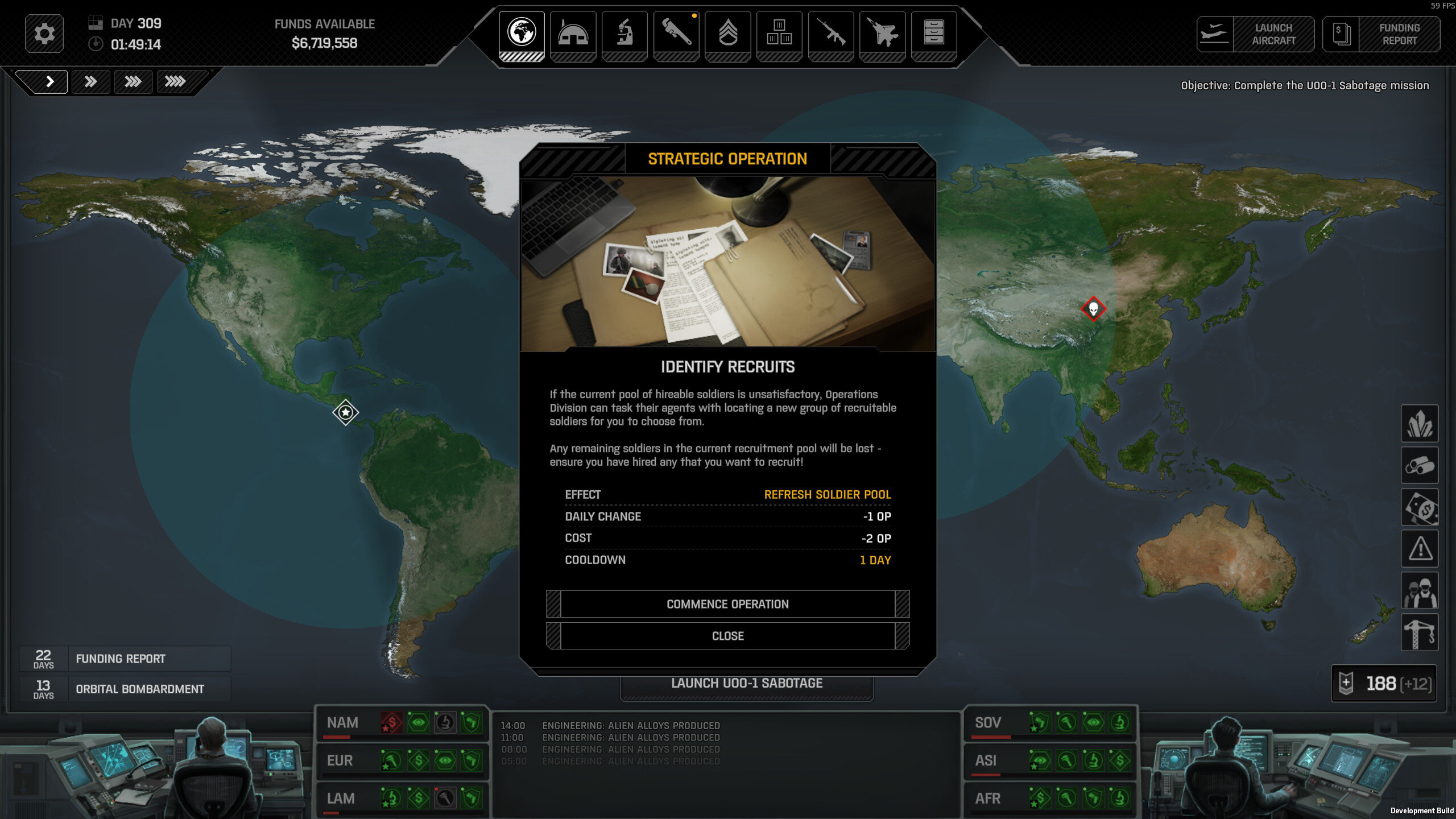 fusion-waffle Posted March 12 Posted March 12 (edited) Description Identify Recruits operation cost can go negative (i.e. it gives you OP), the OP cost does not reset after you use it balance/opinion comment: I like the board-game-ish mechanic of slowly decreasing the cost / increasing the benefit of unused strategic operations until they become compelling choices. The OP cost of Identify Recruits does not need to go negative or become permanently cheaper for refreshing soldier pool to be compelling to players. I assume this behaviour is unintended / an incomplete feature bundled out the door with impromptu hotfix release -- thanks again for the rapid iteration cycle to fix the hangs during AI turns. What Happened Continued campaign after upgrading to v7.80 experimental. Around day 290 I noticed the Identify Recruits OP cost had dropped to about 15 OPs or so. I was curious what would happen if you ignore it and let time pass... (1/4) On day 306, the OP cost was zero. By day 307, the cost had dropped by another -1 OP and was -1 OP: (2/4) On day 306 I commenced the operation, and got +1 OP, increasing balance from 163 to 164: (3/4) The operation has a 1 day cooldown, so wait a bit (4/4) On day 309, I expected the OP cost to have reset to 35 OP, but it reset to -1 OP & continued decreasing. Further Info Please see f11 bug report zip: bug_report_2026-03-12-14h56_st_7.8.0_user_f11_0.zip Edited March 12 by fusion-waffle Quote